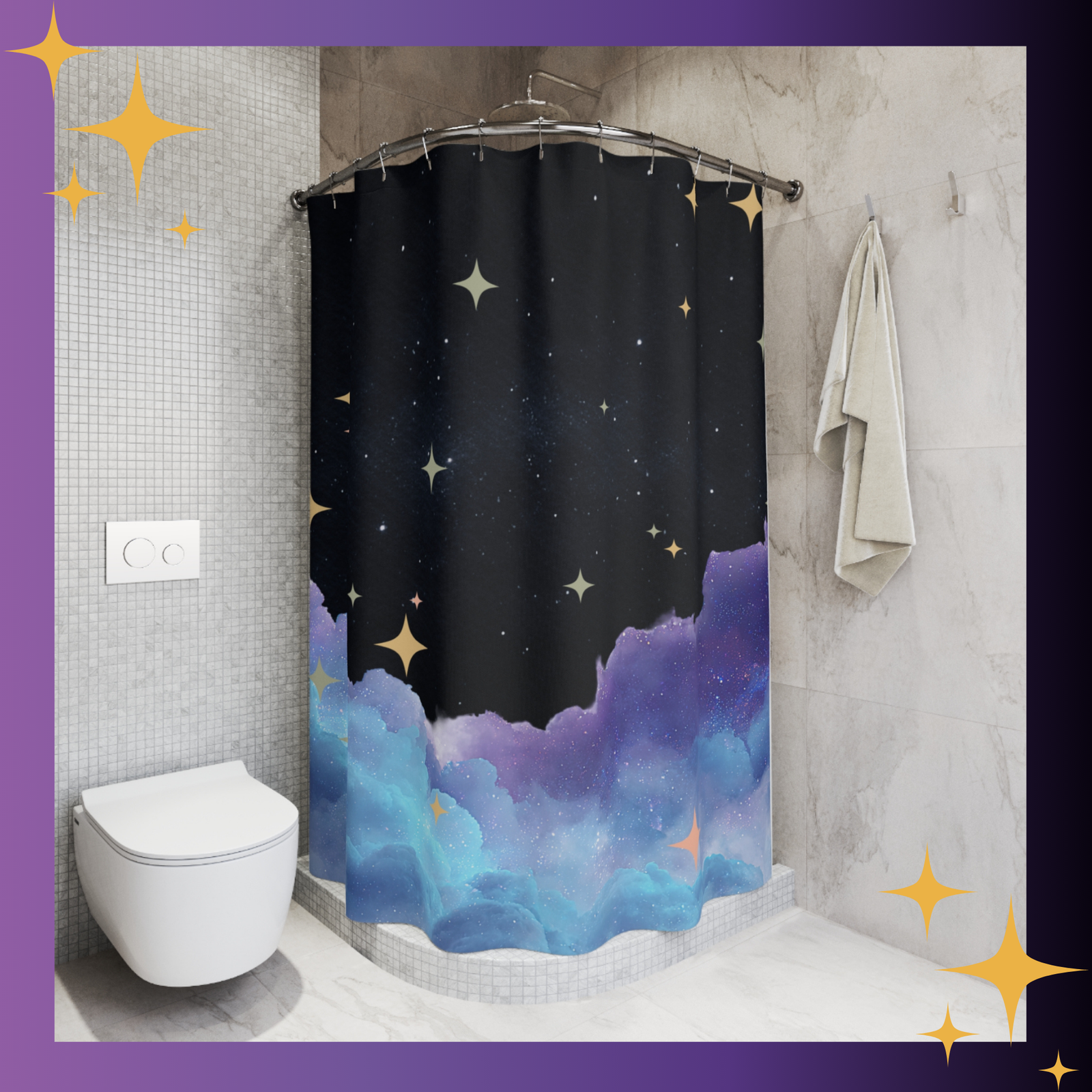 Transform your space with the Galaxy Cloud shower curtain from Mystical Hue Realm. Created for lovers of celestial and artistic home decor, this statement piece brings bold personality, color, and magical atmosphere to your bathroom. Made from durable polyester with a vibrant one-sided print, this shower curtain is designed to turn an everyday space into something more expressive and enchanting. Whether your style leans bold and spooky or dreamy and celestial, it’s an easy way to make your bathroom feel more personal, artistic, and full of mood.