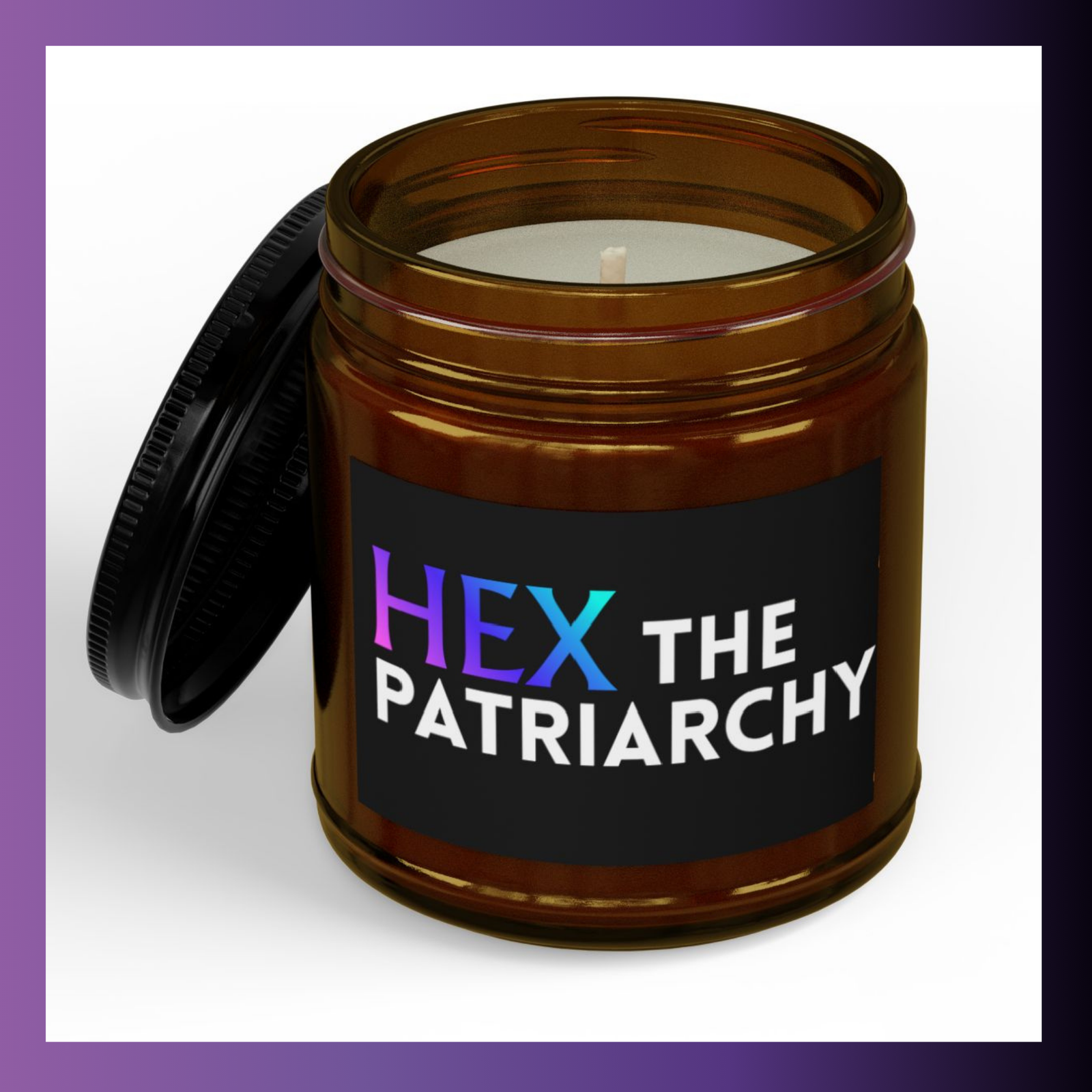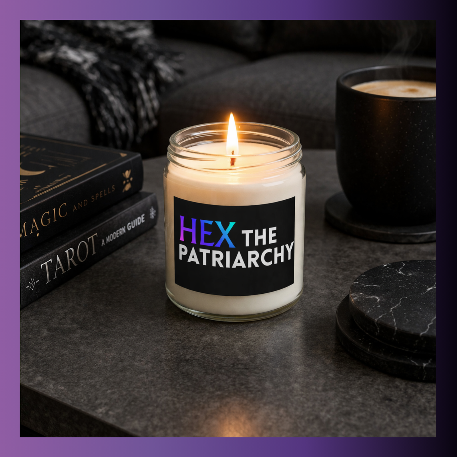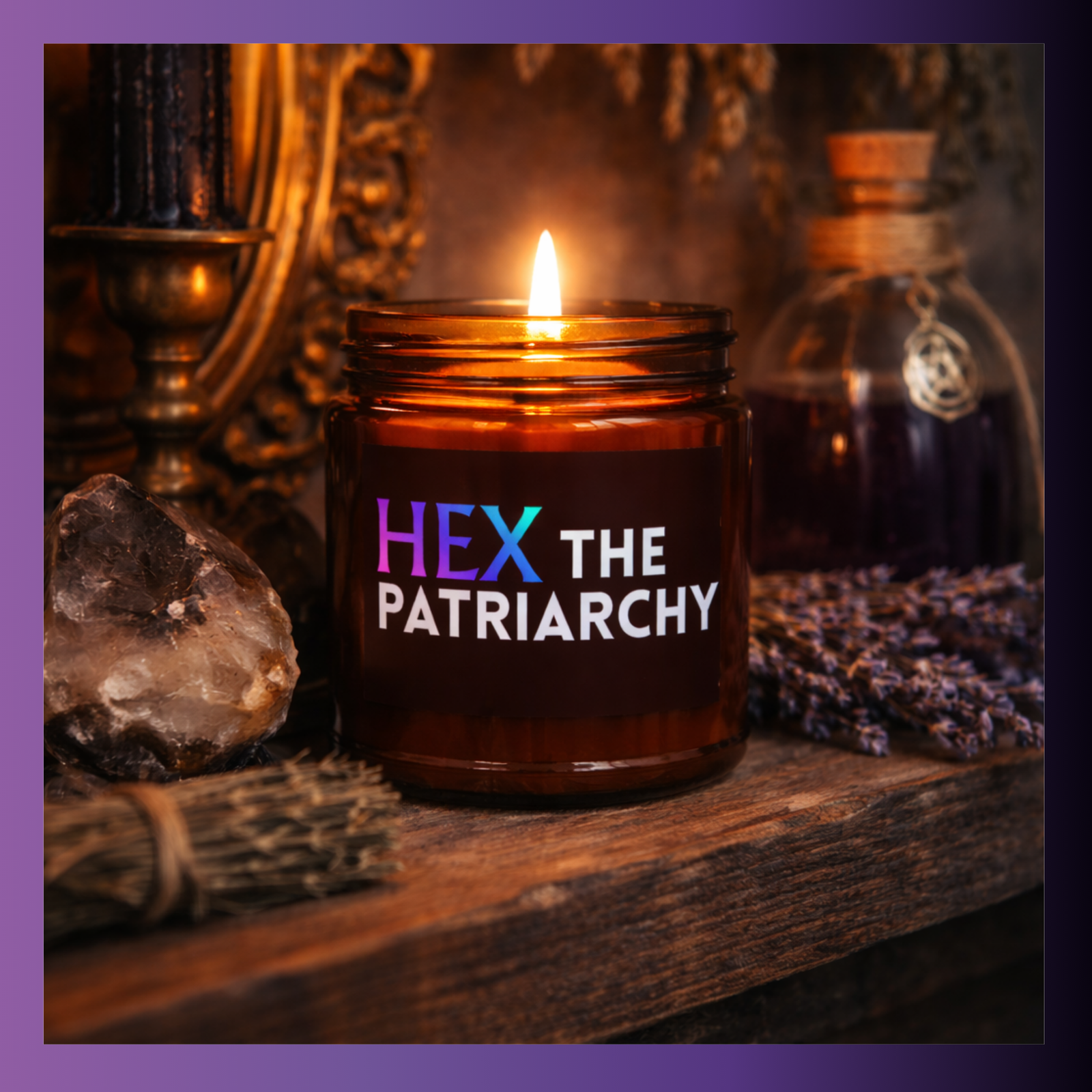 Set the mood with the Hex The Patriarchy candle from Mystical Hue Realm. Created for lovers of feminist, witchy and expressive home decor, this hand-poured soy candle adds cozy atmosphere and bold personality to vanities, shelves, reading nooks, and gift baskets alike.
