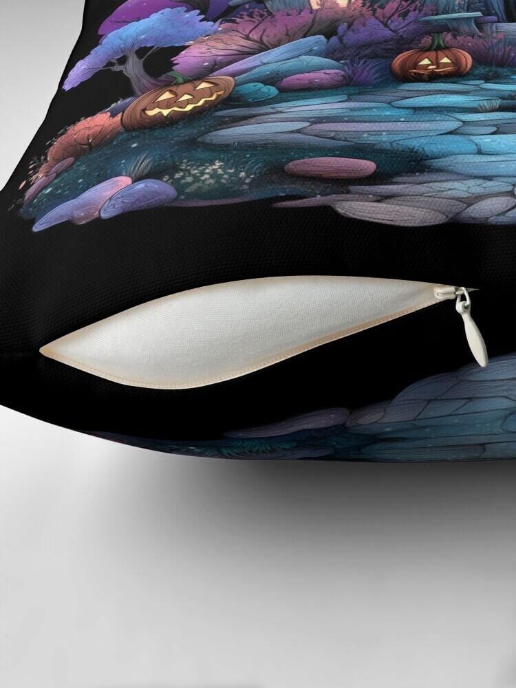This haunted house throw pillow is printed edge-to-edge on a soft yet durable cover with a concealed zipper, so you can remove the cover when it needs a refresh. On Redbubble, you can choose from several sizes and decide whether you want the cover only or the pillow insert included, depending on what works best for your space. The vibrant print holds its color, making it an easy statement piece year after year.