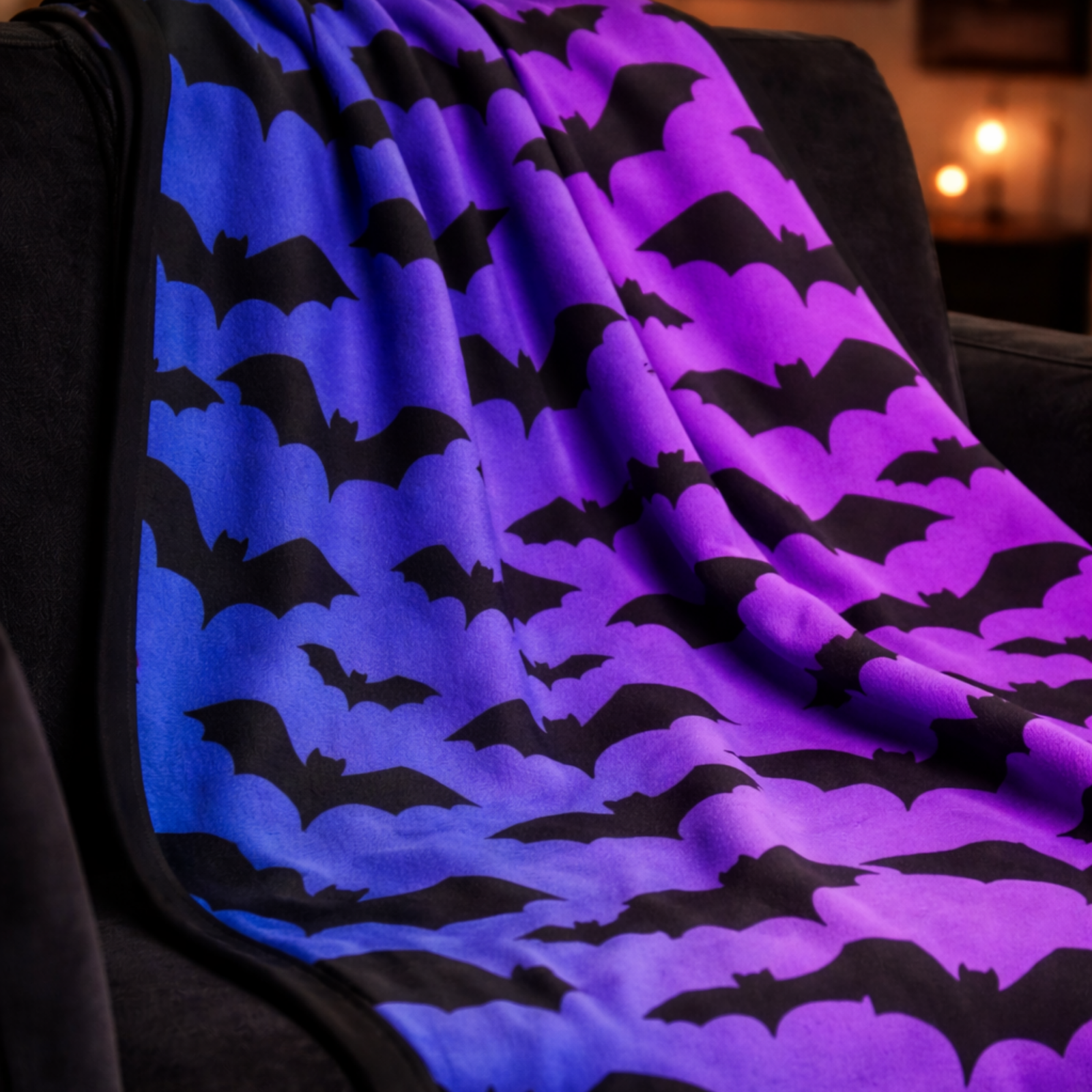Wrap your space in cozy magical style with the Mystical Bat blanket from Mystical Hue Realm. Created for lovers of spooky, pastel goth, and year-round Halloween, this statement throw adds warmth, personality, and bold visual charm to couches, beds, reading nooks, and movie nights.