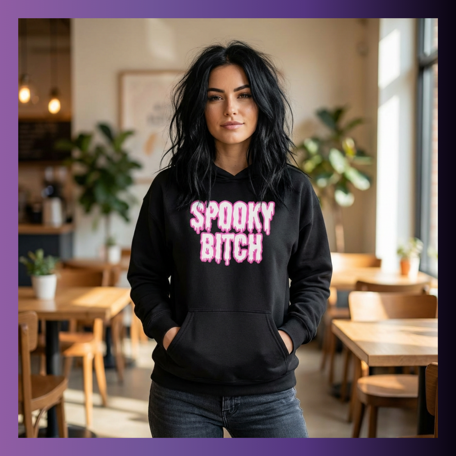 Wrap yourself in cozy style with the Spooky Bitch hoodie from Mystical Hue Realm. Created for lovers of gothic, horror, and year-round Halloween fashion, this statement hoodie brings bold personality to everyday outfits while keeping you warm, comfortable, and easy to style through cooler seasons.