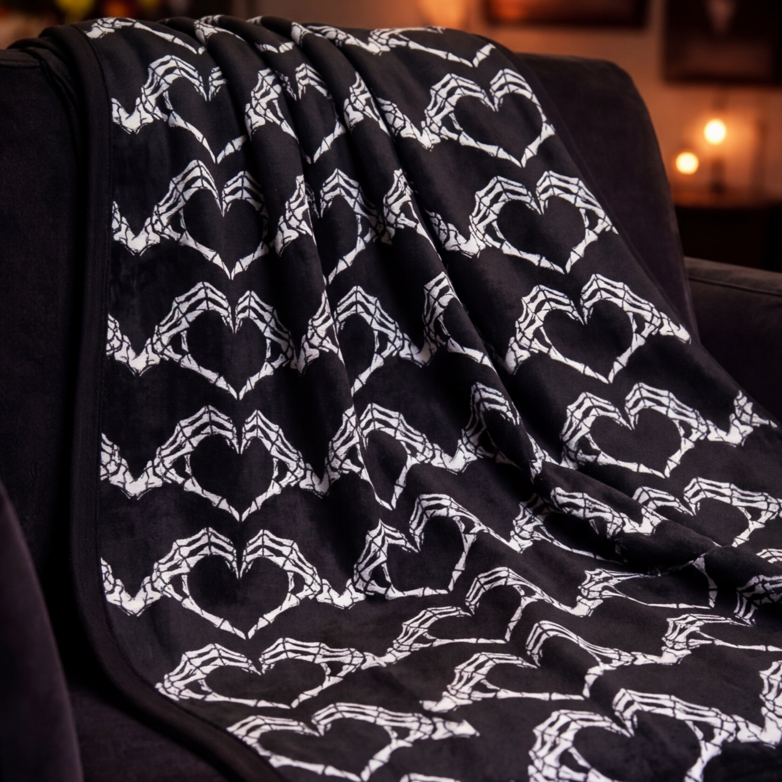 Wrap your space in cozy magical style with the Spooky Love fleece blanket from Mystical Hue Realm. Created for lovers of spooky, witchy, gothic decor, this statement throw adds warmth, personality, and bold visual charm to couches, beds, reading nooks, and movie nights.