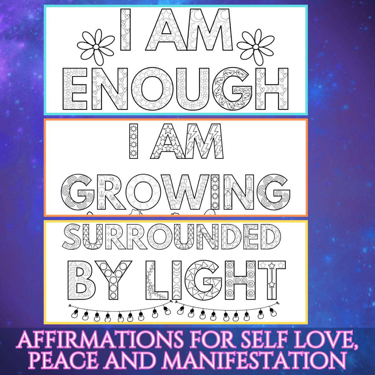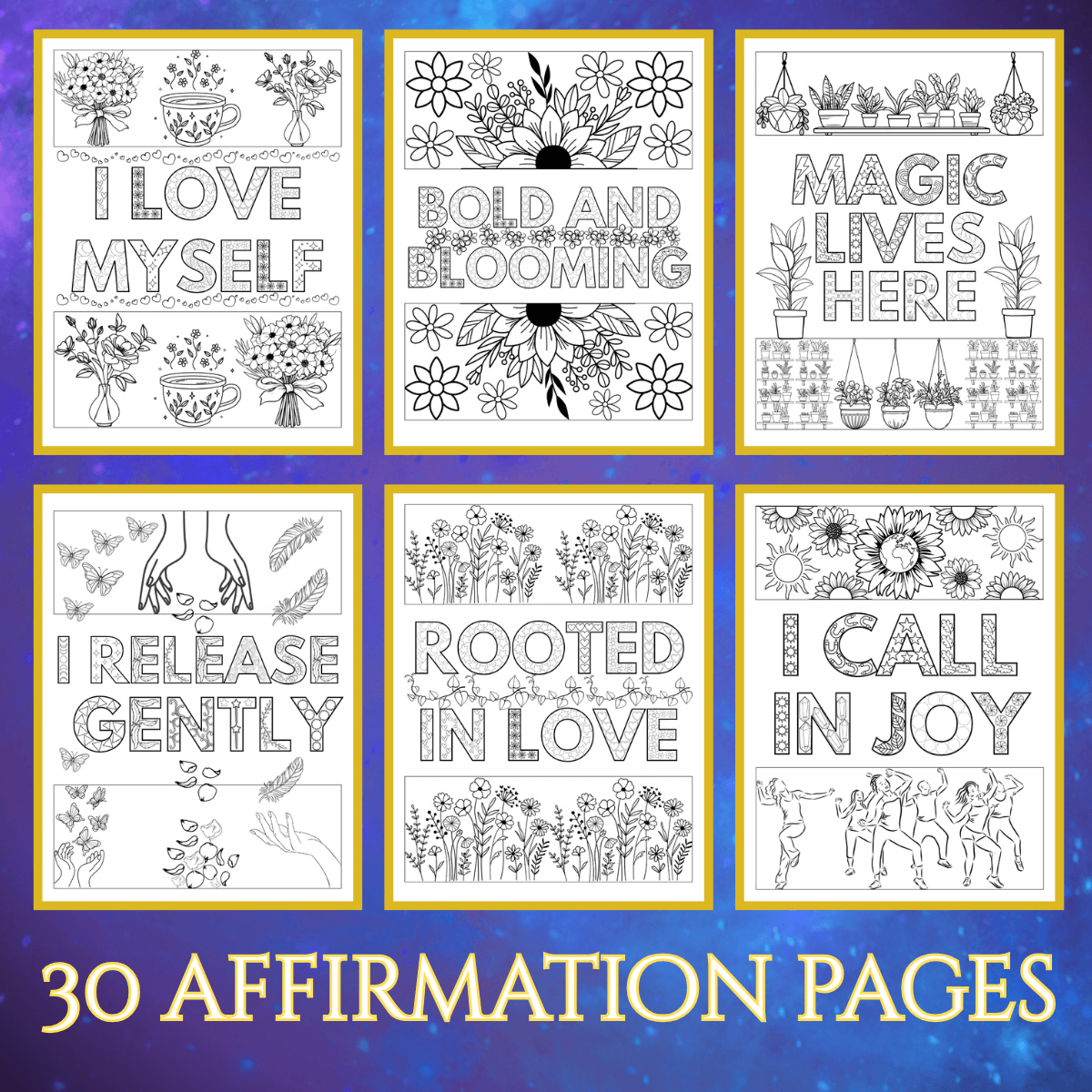 From gentle reminders like βI Am Enoughβ to empowering declarations like βRooted in Loveβ and βI Call in Joyβ, every page invites you to pause, breathe, and create something uniquely your own. Whether youβre new to coloring or a seasoned enthusiast, these designs offer a soothing space for self-expression and self-love.